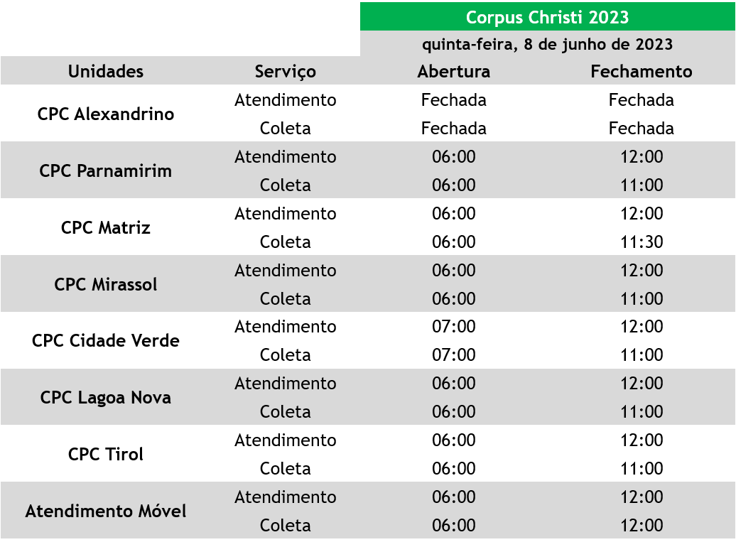 Confira os horários das nossas unidades e atendimento móvel durante o feriado de Corpus Christi 2023!